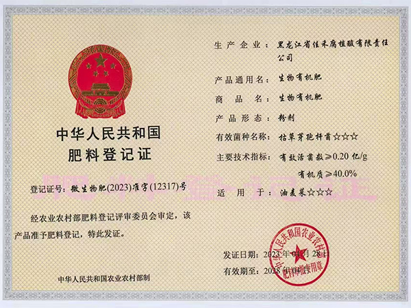 肥料正式登記證